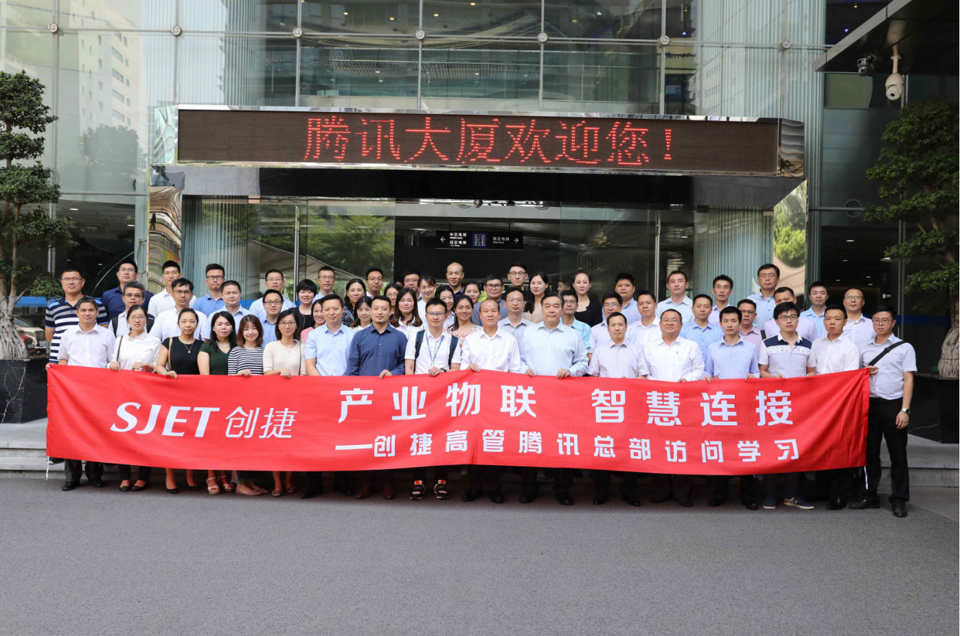 7月11日,在公司黃育存董事長的帶領下,創捷高管一行50多人前往騰訊總部訪問學習。2017年創捷已與騰訊集團簽署戰略合作協議,雙方在物聯網